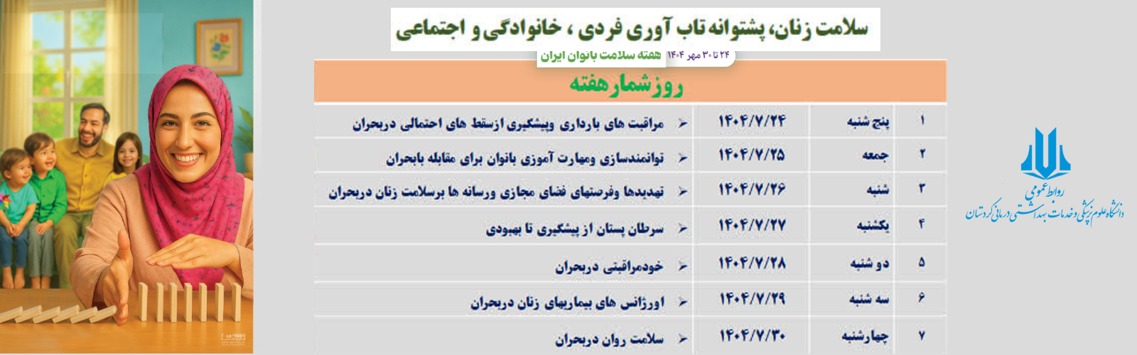 معاون امور بهداشتی دانشگاه در خطاب به بانوان گفت: مراقبت از خودتان نشانه خودخواهی نیست، بلکه پایه مراقبت از خانواده است. زنان سالم، خانوادههایی مقاومتر و جامعهای توانمندتر میسازند.