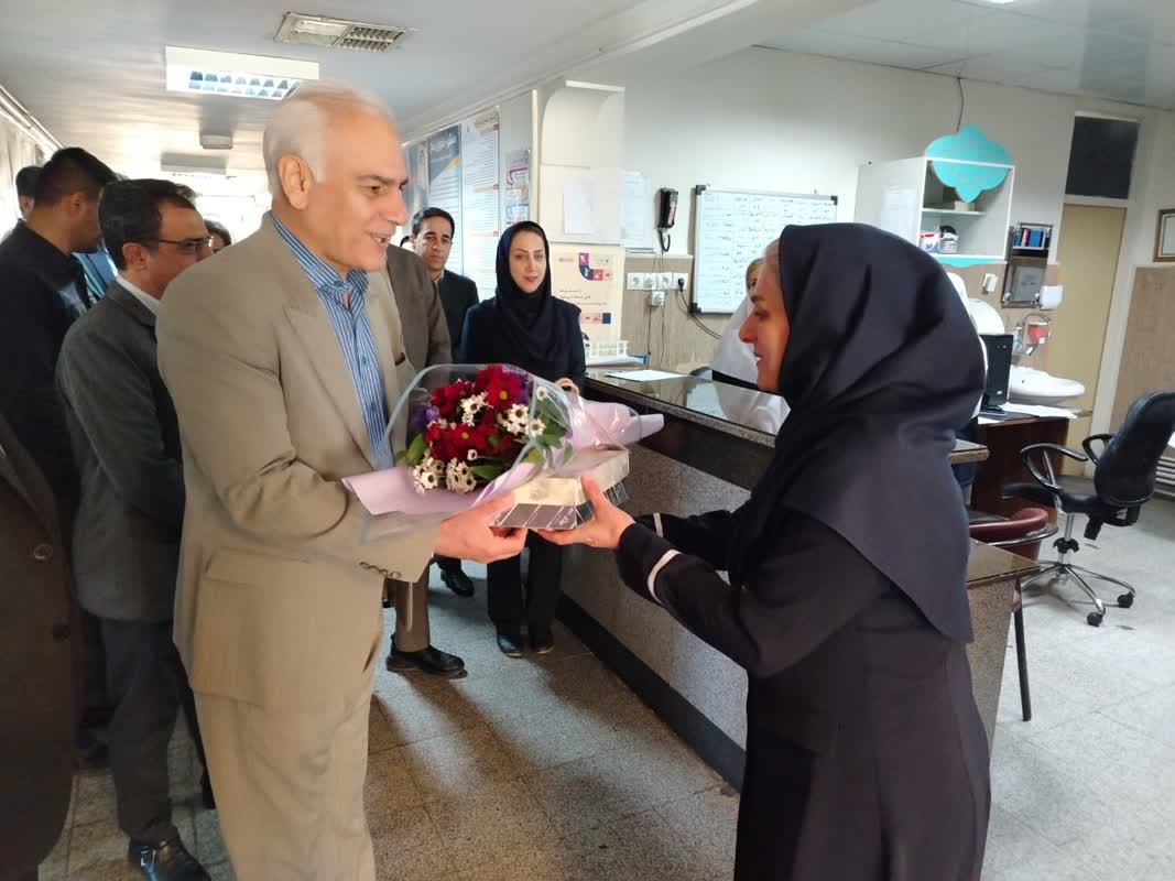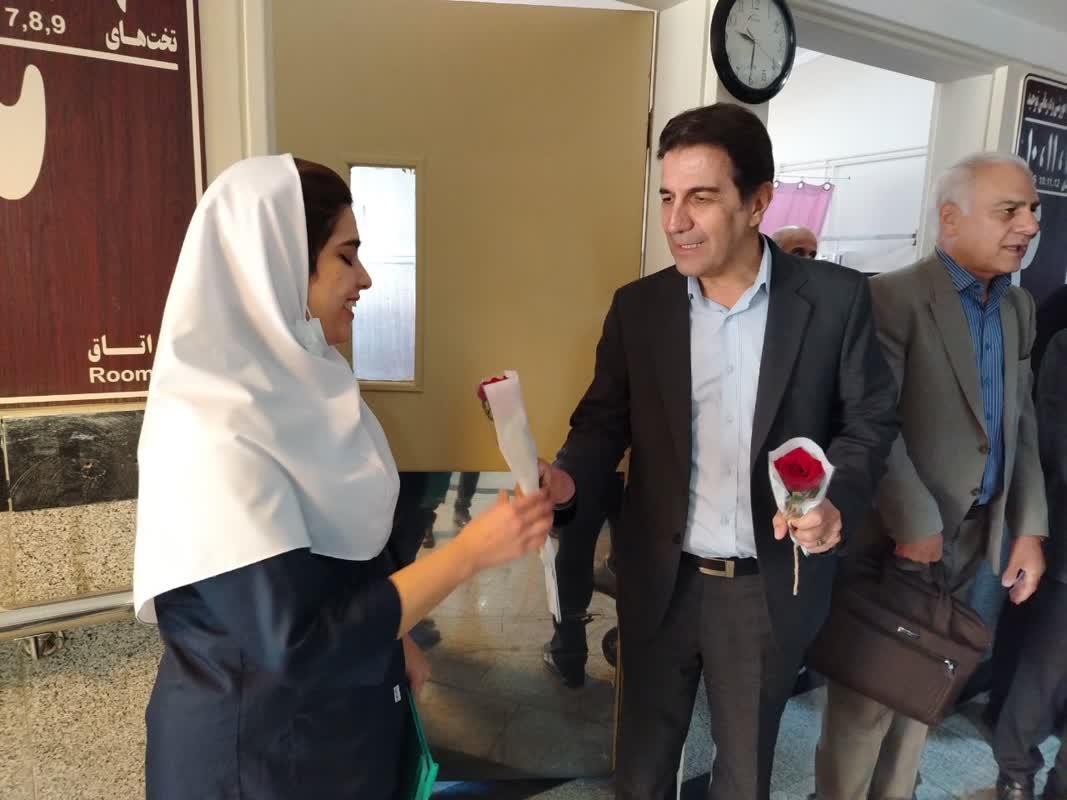 در این مراسم که با فضایی صمیمی همراه بود، اعضای هیئت رئیسه حاضر، از نزدیک با پرستاران بخشهای مختلف این بیمارستان به گفتوگو نشستند و از زحمات شبانهروزی آنان تقدیر کردند.